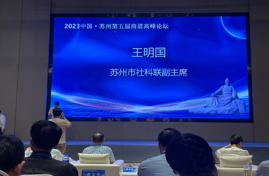 为进一步拓展高博智库特邀研究员们的学术视野和业务学习,加强与在苏各级各类学术、智库、研究会等科学研究机构的学术交流与互动互访,积极推进高博智库“走出去”、“引进来”,6月25日上午,人文社科学院副院长陶德胜、院长助理卢春林、马克思主义学院刘峰博士、学院办公室主任侯宇晨等高博智库(苏州)发展研究中心部分特邀研究员应邀参加苏州范蠡文化研究会主办的2023年“中国·苏州第五届范蠡商道论坛”。