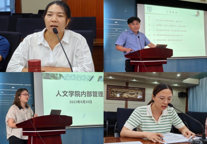 教学副院长马亚丽、科研副院长陶德胜、办公室主任侯宇晨、学工办主任赵雪飞分别围绕教育教学、学术科研、内部管理、学生工作等四个方面作了主题发言。