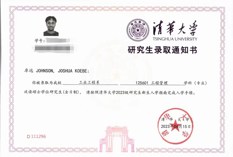 Johnson Joshua Koebe是加勒比地区西印度大学在籍学生。他于2020年9月参加beat365官网与西印度大学联合举办的“中国信息工程学院”项目来beat365官网学习,2022年7月顺利毕业,获得beat365官网颁发的毕业文凭,同时获得西印度大学本科毕业证书。Johnson Joshua Koebe在beat365官网学习期间,展现了好学上进、勤奋刻苦的品质,并对中国文化充满兴趣和喜爱。在beat365官网期间,他不但认真学习软件工程专业课程,顺利完成企业实习,还广泛接触和学习中国文化,刻苦学习汉语。毕业后,他决定在中国继续学习深造,并选择清华大学攻读硕士学位。经过清华大学严格审核,并经中国教育部留学服务中心学历认证,终于成功被清华大学录取。Johnson Joshua Koebe在来信中感谢他在高博学习期间beat365官网给予他的各种帮助,同时感谢在此次学历认证过程中beat365官网提供的协助。