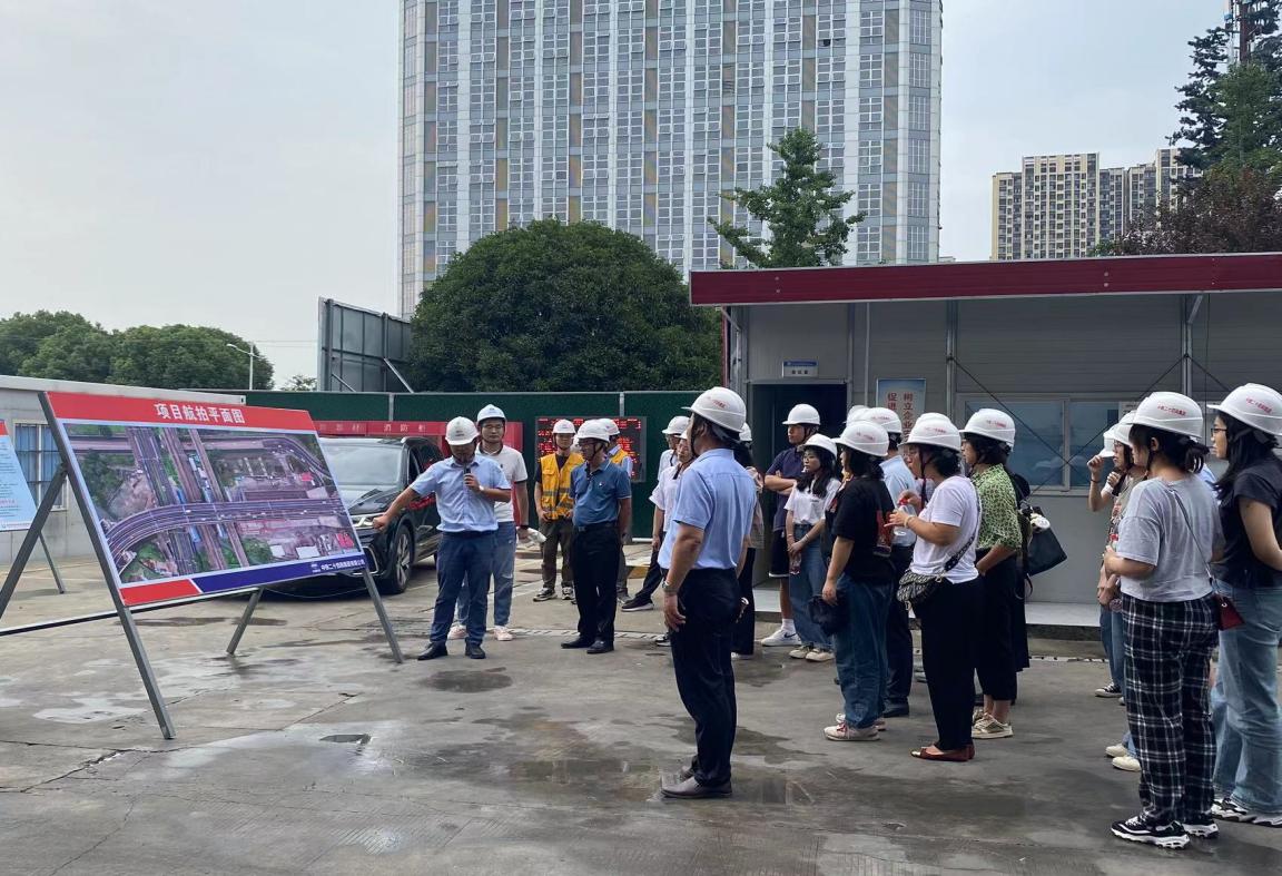 研学党员在中铁二十四局工程技术人员的引导下来到位于姑苏区虎泉路的西环高架北延工程项目施工现场,西环快速路是苏州城区南北向重要的交通主干线,承载了大量的跨区域跨组团交通出行量,项目部经理王扇良向大家介绍了西环高架北延工程施工的重要意义、施工难度、施工进度等。据介绍,跨铁路建桥大大增加了该项目的施工难度和技术难度,同时在铁路上方施工还须保障铁路正常运行,对涉铁路段施工工艺、采用架桥机架梁施工等要求更高。项目总工程师刘锋向研学成员详细介绍了架桥机的构成和施工原理,并带领研学成员进入高架桥顶部,实地勘察了架桥机、施工情况等。西环高架北延工程的完成,将大大缓解苏州跨区域出行交通压力,成为展示苏州魅力的新“窗口”。