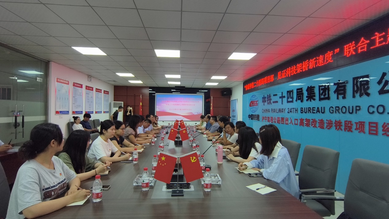随后,研学成员回到了中铁二十四局项目部,一起观看中铁二十四局发展历程回顾视频。王经理进一步介绍了中铁二十四局路桥公司的成立、发展、企业文化和辉煌业绩,研学学员被路桥公司守正创新、卓越共赢的价值追求和实干争先、清正和谐的企业文化深深触动。
