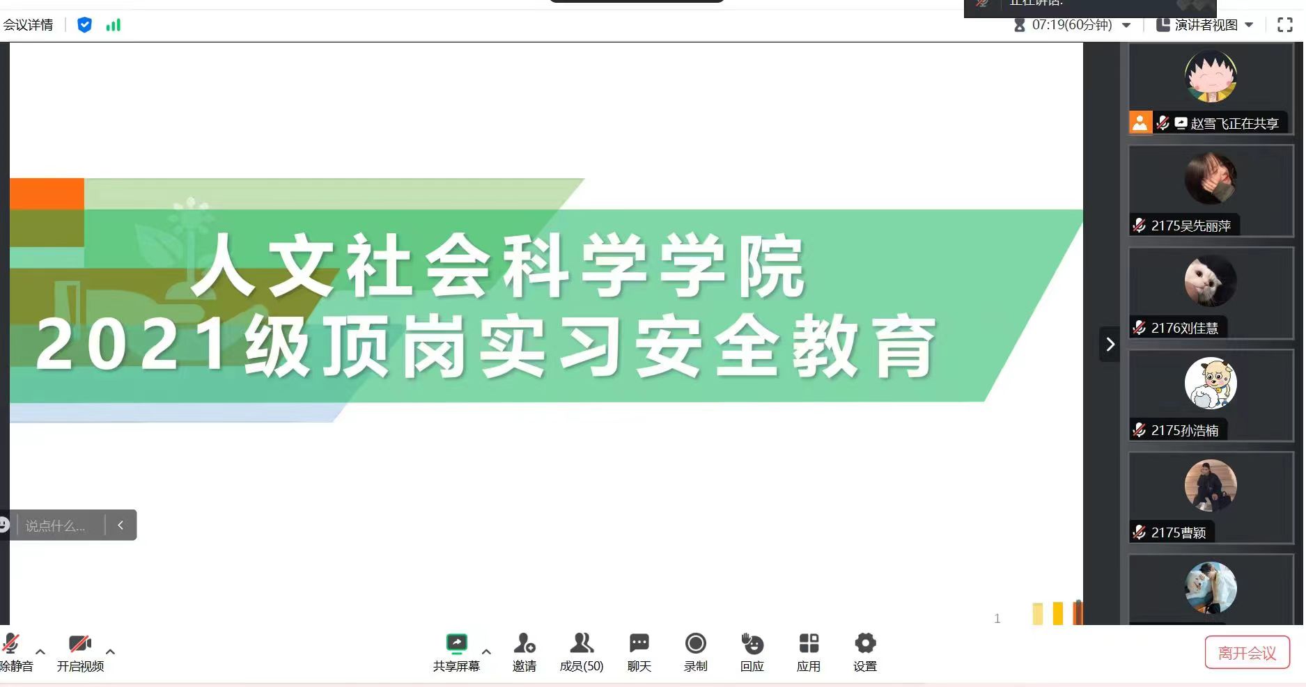 本次会议进一步强化了岗位实习学生的安全意识和纪律意识,厘清指导教师工作职责,为接下来岗位实习工作有序开展奠定了良好基础。(供稿:人文社会科学学院)