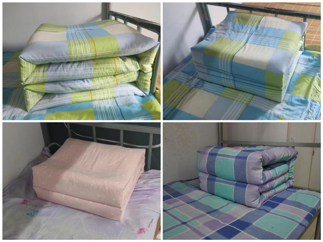 “出门看队伍,进门看内务。”内务整理是军训生活中尤为重要的一项内容,是学生军训的必修课,更是学生走向独立的第一步。为整军容树军纪,锤炼军人作风,培养学生良好的生活习惯,营造舒适整洁的生活环境,全体新生军训教官来到学生宿舍,按照军训内务规定,指导新生开展内务整理训练。