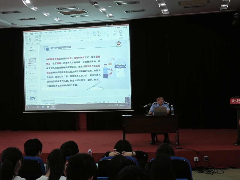 关注安全、珍爱生命,构建和谐校园。为了增强2023级新生安全防范意识,提升自我保护能力,9月15日至16日,学校安全保卫部、安全保卫处、武装部以新生军训为契机,邀请高新区禁毒办刘警官、自强服务社陈站长和科技城派出所牛警官对新生开展禁毒普法宣传教育、预防网络和电信诈骗宣讲活动。学校三千余名新生参加了此次活动。
