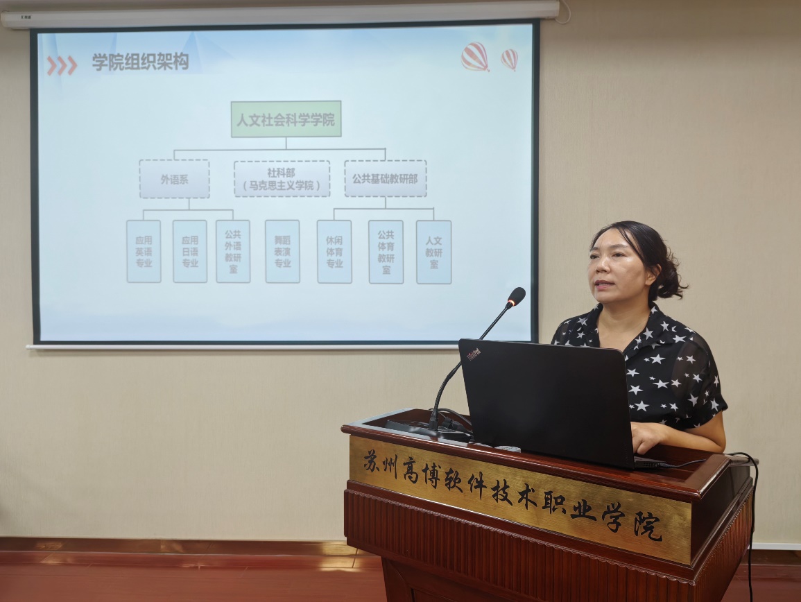 首先,人文学院教学副院长马亚丽从组织架构、师资建设、教学成效以及存在不足等方面向与会领导汇报了我院在专业人才培养工作方面的情况。