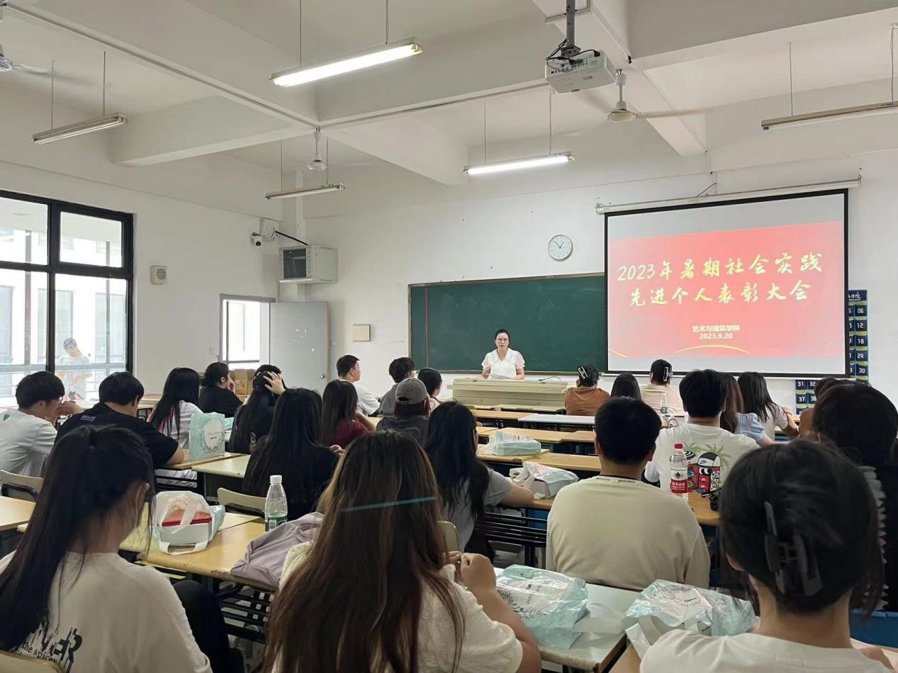 为表彰2023年暑期社会实践中的先进个人,展现艺术与建筑学院学子风采,在艺术与建筑学院党总支领导关心支持下,我院分团委于9月20日下午13:00在12-216教室召开2023年暑期社会实践先进个人表彰大会,会议由分团委书记韩露老师主持。
