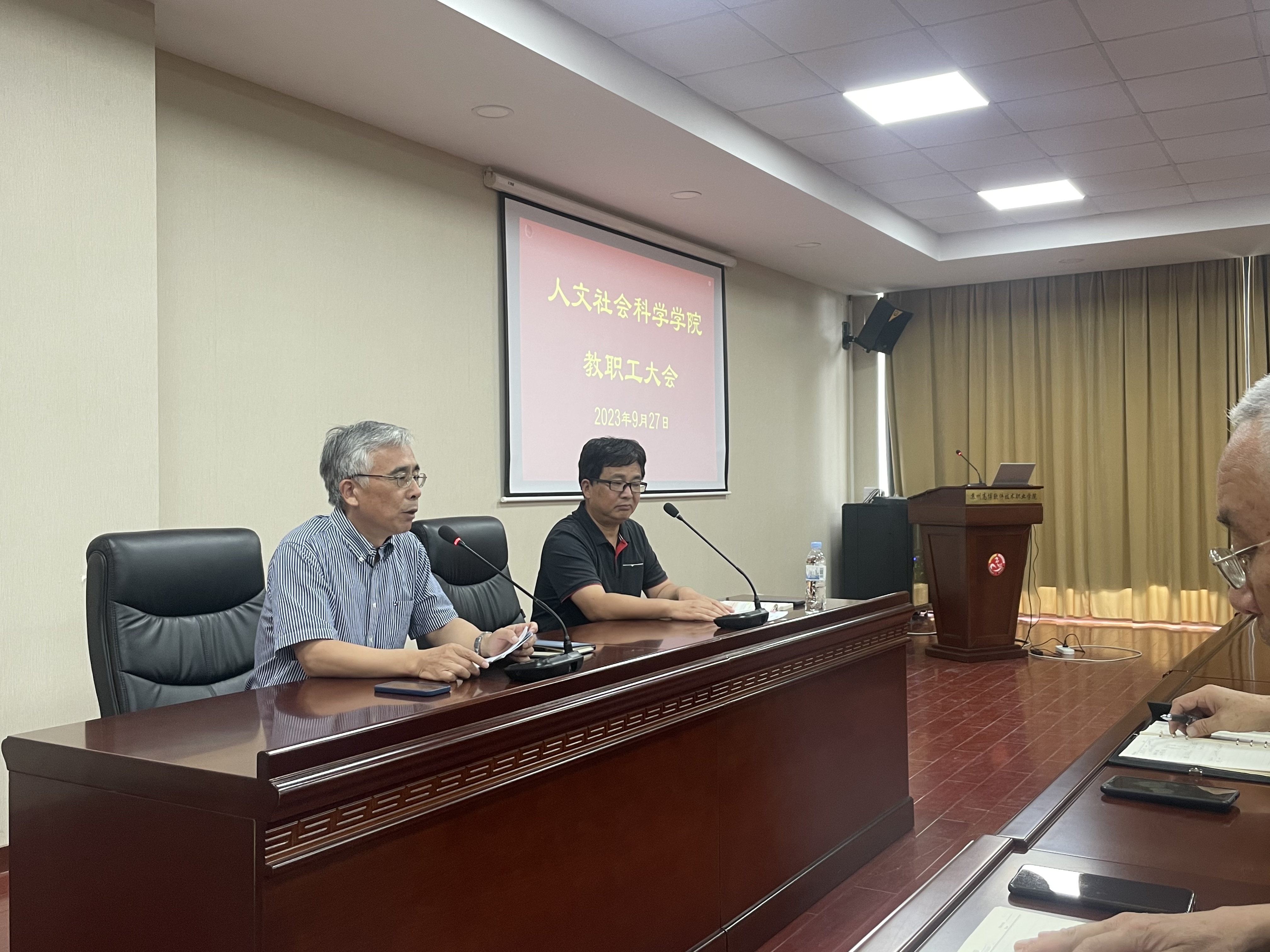 9月27日下午,人文学院在行政楼215会议室召开了全体教职工大会暨政治理论学习会。会议由黄兴院长主持。