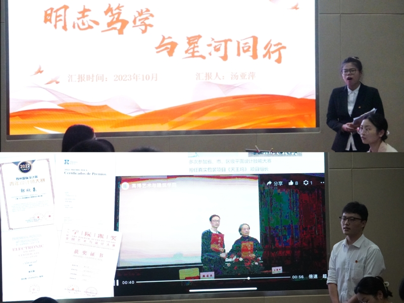 经个人申报,二级学院审核公示后推荐的6位候选学生按照抽签顺序依次进行现场展示。各位候选人结合PPT从思想品德、专业学习、学科竞赛、学生工作、社会实践等方面分享了各自在学校的成长历程,展现了高博学子向上向善的精神风貌和拼搏进取的精神。答辩结束后,评审老师现场对参选学生从学习成绩、综合素质等方面进行综合评审,最终决定拟推荐艺术与建筑学院21新视界工作室4班郭欣豪同学为beat365官网2022-2023学年的国家奖学金推荐人选。