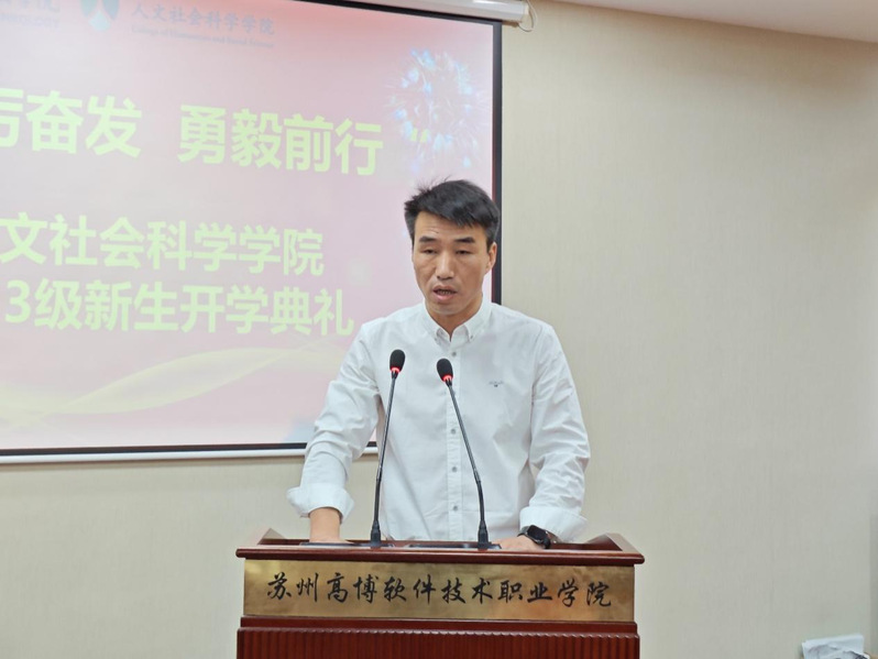 休闲体育专业负责人张赞作为教师代表发言,他希望同学们珍惜进入大学殿堂深造的机会,重视和积极参与体育、美育活动和创新实践劳动,立足新起点,迎接新挑战,争创新成绩,做一个担当尽责的追梦者,做一个理想信念的践行者,做一个勤勉务实的奋斗者。