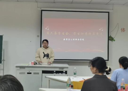 医学与公共服务学院第六届学生会、学生社团换届选举大会于9月25日顺利举行。本次大会旨在选出新一届学生会及学生社团各部门的骨干成员,进一步推动学生社团的健康发展。各年级教师代表、学生代表共同参加了此次会议。