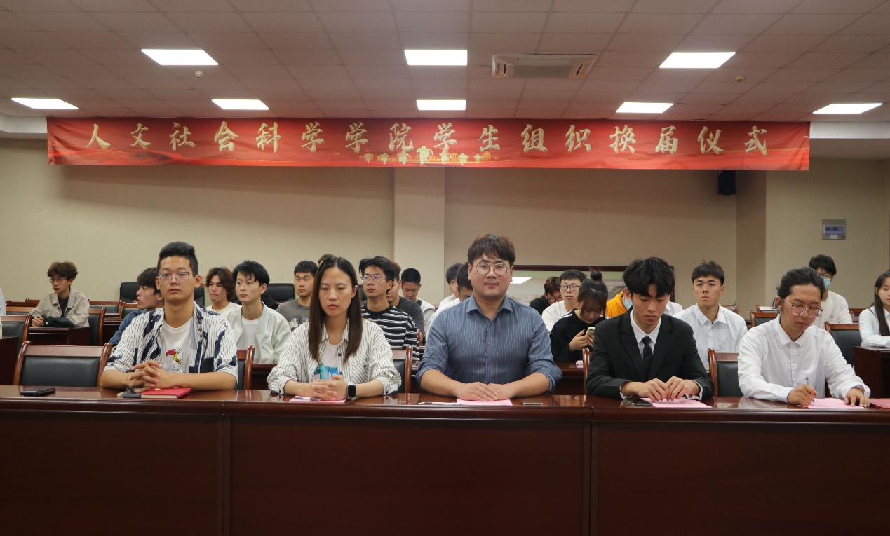 2023年10月18日晚18点,人文社会科学学院六届二任学生组织换届仪式在行政楼215会议室隆重举行。学院学工办主任兼分团委书记赵雪飞、学院分团委指导老师吴敬德、校学生会主席团成员、各学院学生组织代表出席了本次活动。