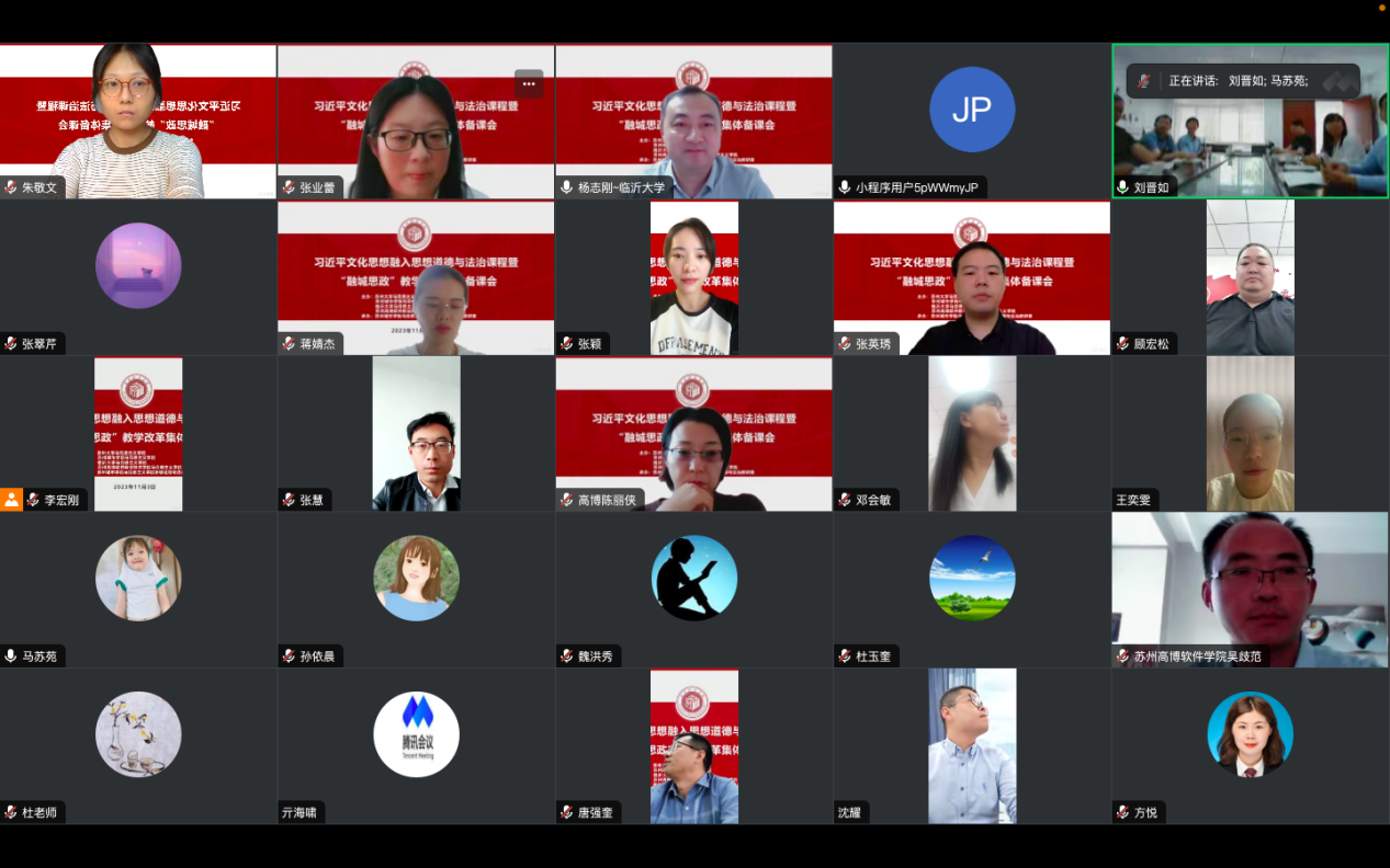 苏州高博软件技术职业学院马克思主义学院院长吴歧范进行点评。他对承办学校的前期准备表示感谢,并指出今天的集体备课会很及时的将最新理论成果进行学习研讨,对上好思政课有很大帮助。四校参会教师进行磨课研讨交流,针对自己在教学中遇到的困境或总结出的经验做出交流分享。