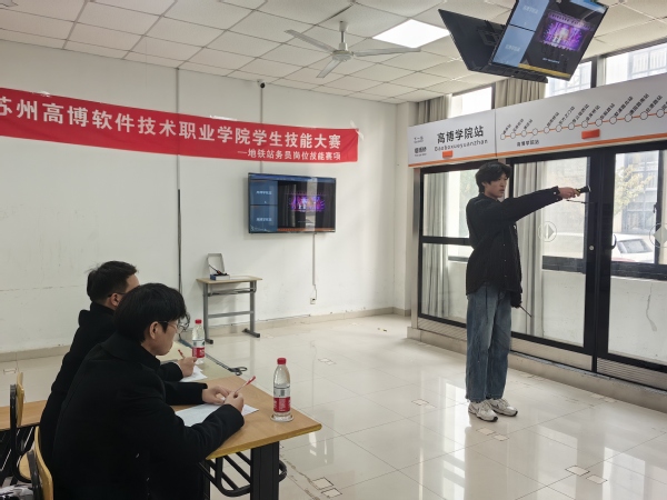 为进一步落实技能竞赛引领职业教育“三教”改革,提高技术技能人才培养质量,11月15日,苏州高博软件技术职业学院学生技能大赛——地铁站务员岗位技能赛项在14号楼站控实训室顺利举行。机电工程学院院长助理、轨道交通系副主任韩丽东副教授,苏州地铁3号线安全主管王丽萍,3号线横山区域站区负责人庄翔,3号线园区火车站区域站区负责人余子航出席比赛并担任大赛评委。
