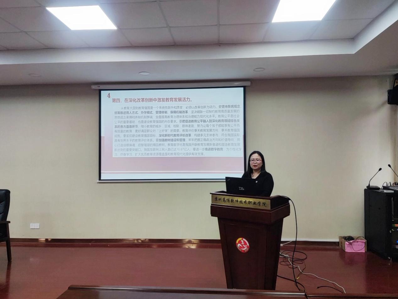 教育兴则国家兴,教育强则国家强。为深入学习领会习近平总书记在中共中央政治局第五次集体学习时的重要讲话精神,增强政治自觉,强化责任担当,提升师德师风工作质量和水平,推进教师队伍建设高质量发展。国际商学院党总支组织全体党员教师于11月22日在215会议室开展了以“学习习近平总书记主持中央政治局第五次集体学习时的重要讲话精神”的专题党课学习。本次党课学习由国际商学院党总支委员牛伟同志主讲,党总支书记王则斌同志主持。