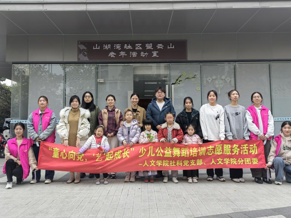 为加强与社区联动,切实帮助社区小朋友提高舞蹈素养,让“为群众做实事”实践活动走深、走实,不断增强党支部的凝聚力,11月26日,人文学院社科部党支部联合院分团委走进东渚街道山湖湾社区开展本学期第一次公益舞蹈培训活动,本次活动有支部党员教师、第33期入党积极分子、分团委部分学生干部以及社区工作人员参加。