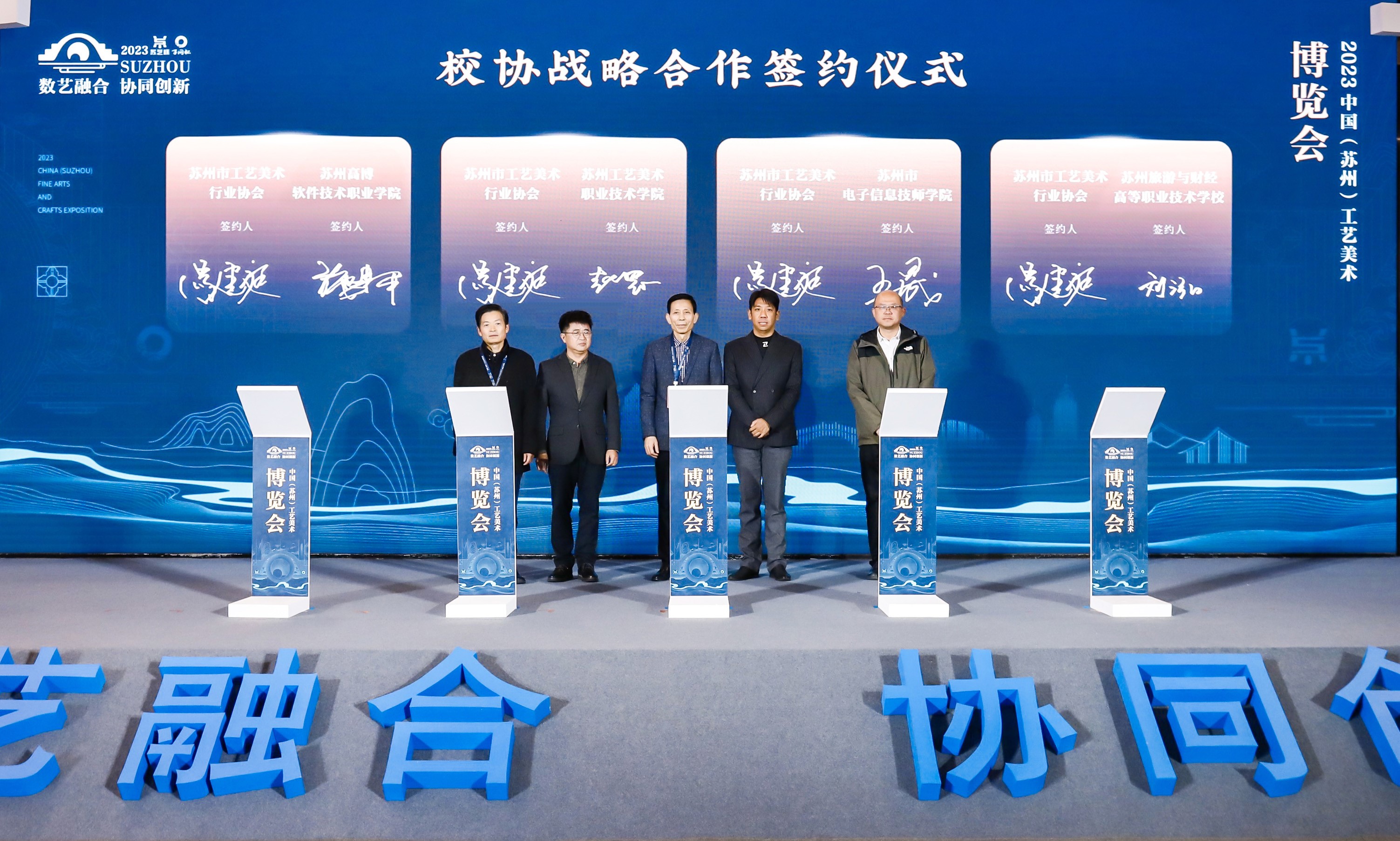 为进一步激发苏州传统工艺创新创造活力,培养更多创新性后继技艺人才,艺博会第二个议程是合作签约仪式。由苏州市工艺美术行业协会牵头和苏州高博软件技术职业学院艺术与建筑学院、苏州工艺美术职业技术学院手工艺术学院、苏州市电子信息技师学院、苏州旅游与财经高等职业技术学校签定战略合作协议,我院施建平教授上台签约。此次签约仪式,旨在加强协会与学校之间的教学合作,开展传统工艺交流活动,夯实学生职业技艺和技能,增强学生专业学养,链接企业专家,指导学生就业意向,开展教学社会实践活动,为推进苏州传统工艺高质量发展而共同努力。(艺术与建筑学院党总支)