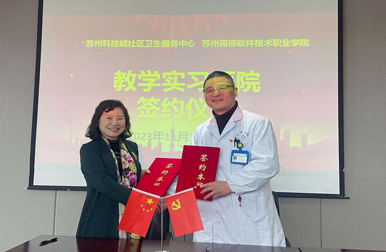 11月30日上午,我院与苏州科技城社区卫生服务中心党建共建、教学实习医院、校外实践基地揭牌仪式在中心三楼大会议室顺利举行,这标志着苏州科技城社区卫生服务中心正式成为我院相关专业的实习基地。