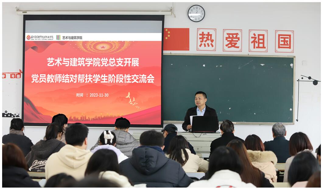 为进一步发挥党员教师的先锋模范作用,帮助学生自强自律,推动主题教育走深走实,11月30日,艺术与建筑学院党总支在12-402教室召开党员教师结对帮扶学生阶段性交流会。党总支书记、副院长施建平教授,党总支副书记纪冰心副教授,纪检委员张斌副院长,宣传委员江水明副院长,组织委员、学工支部书记、学工办主任李一帆老师,艺术与建筑学院全体党员教师,部分受帮扶同学,大一、大二学生代表及入党积极分子参加会议。会议由党总支宣传委员江水明主持。