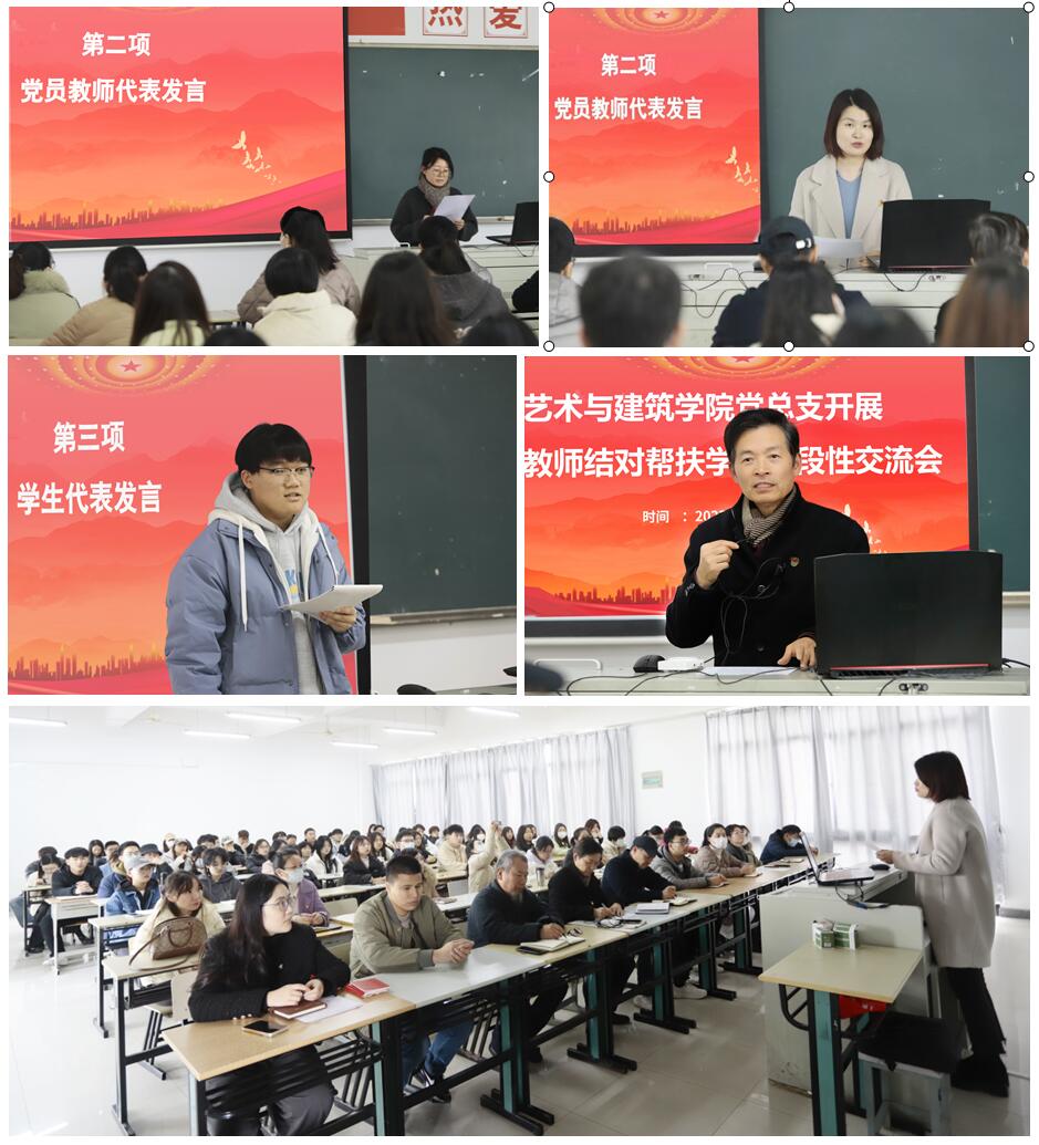 党总支书记施建平教授提出三点希望:一是通过结对帮扶工作开展,拉近了党员教师和学生的距离,增强了学生继续努力的信心;二是坚持党旗飘在一线,切实解决学生的实际困难,帮助学生顺利完成学业,解决学生“急难愁盼”问题;三是党员教师结对帮扶活动不是搞花架子,不是搞面子工程,而是压紧压实党建责任,以自己的实际行动为党旗增光添彩。(艺术与建筑学院党总支)