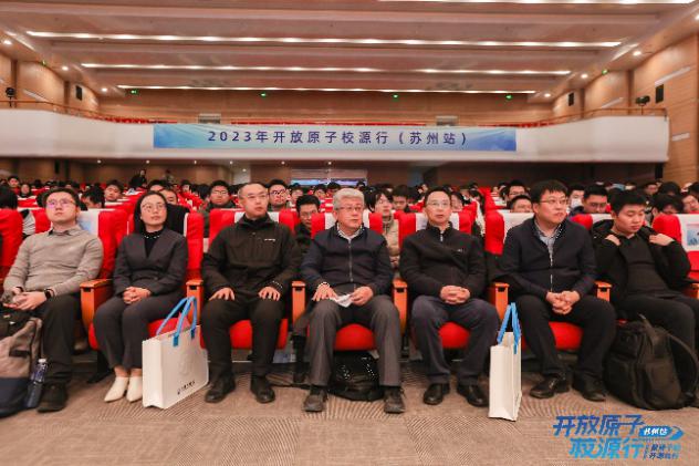 在苏州大学的盛情邀约下,我院40名师生于2013年12月1日,在张楠楠老师、马介莉老师、马程波老师和缴艳昆老师的带领下,前往苏大参加2023年开放原子校源行(苏州站)。