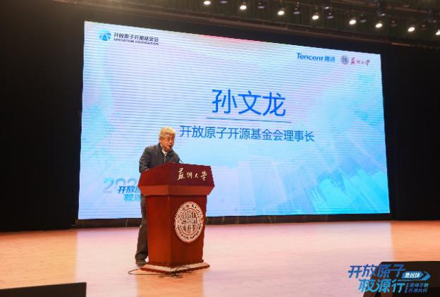 40名师生在苏大存菊堂参与本次会议,会议由苏州大学计算机科学与技术学院党委副书记李恩秀主持,由开放原子开源基金会孙文龙理事长致辞、开放原子基金会教培与行业研究部部长王岩广进行宣讲。
