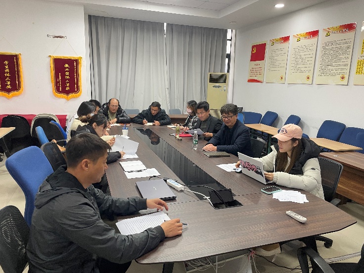 2023年12月11日,人文学院基础部党支部开展了书记讲党课系列活动,院党总支书记吴建明出席会议,基础部所有党员参加会议。