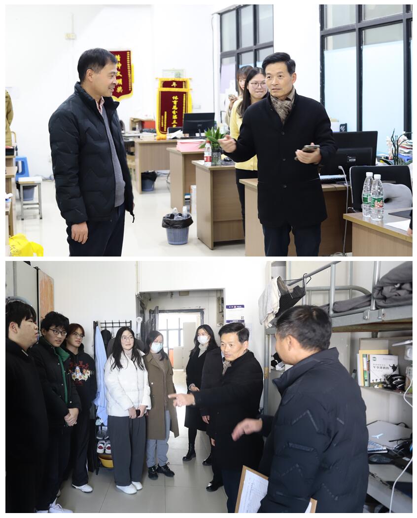 活动中,党总支成员和党员教师代表一行走访学校2号楼学生宿舍,与工程造价专业学生进行亲切地互动。交流中,同学们积极交谈自己的学习情况与生活状态,并感谢老师们的关心。施建平书记从学生学习、生活、纪律和心理等方面,叮嘱同学们珍惜大好时光,刻苦学习知识,努力实现自己的人生价值。纪冰心副书记提醒学生要注意宿舍用电安全,日常生活中提高警惕,增强防诈骗意识。