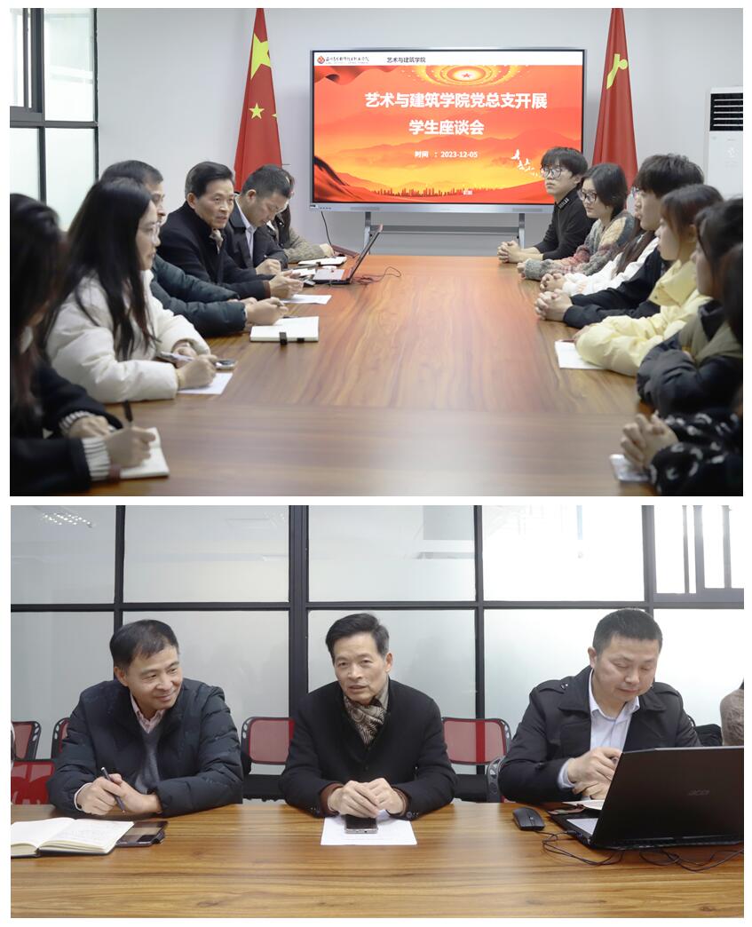 随后,在艺术与建筑学院会议室召开学生座谈会,倾听学生心声,助力学生成长。党总支委员、副院长江水明副教授参加座谈会。会上, 七名学生代表分别进行自我介绍,交流了班级同学学习和生活情况:在辅导员老师的带领下,认真学习党的理论知识,积极向党组织靠拢;班级班风、学习氛围也逐步变好;同学们完成作业的效率高、质量好;23级新生在老师和辅导员的帮助下,迅速融入了新集体开启大学学习和生活等。