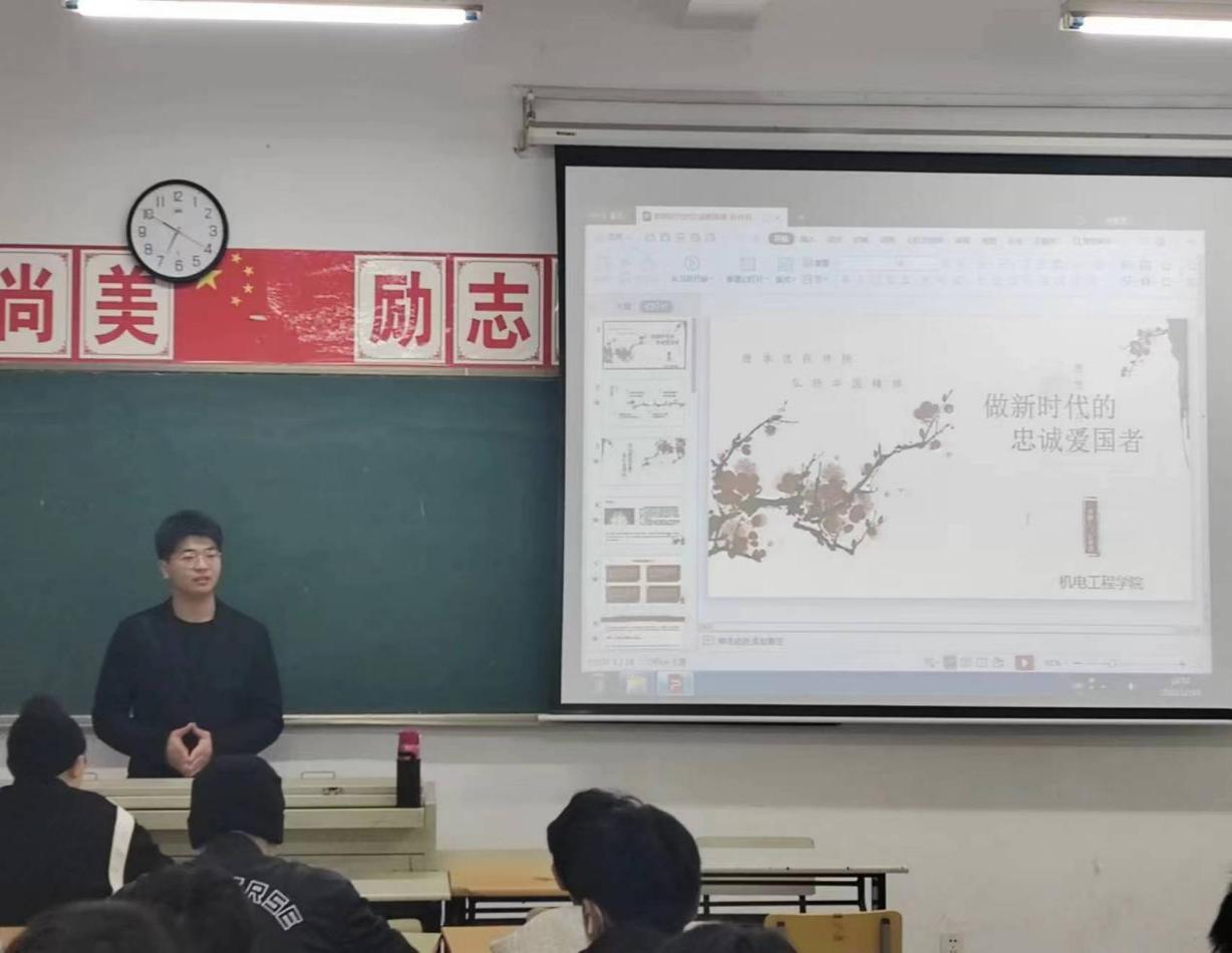 为深入把握新时代赋予爱国主义的深刻内涵,感召青年学子自觉投身中国特色社会主义的伟大实践,以青春书写未来新篇章。12月18日晚,机电工程学院分团委开展“做新时代的忠诚爱国者”信仰公开课。由机电工程学院学生会组织建设部副部长孙向羽同学担任主讲。
