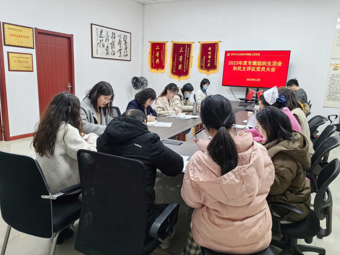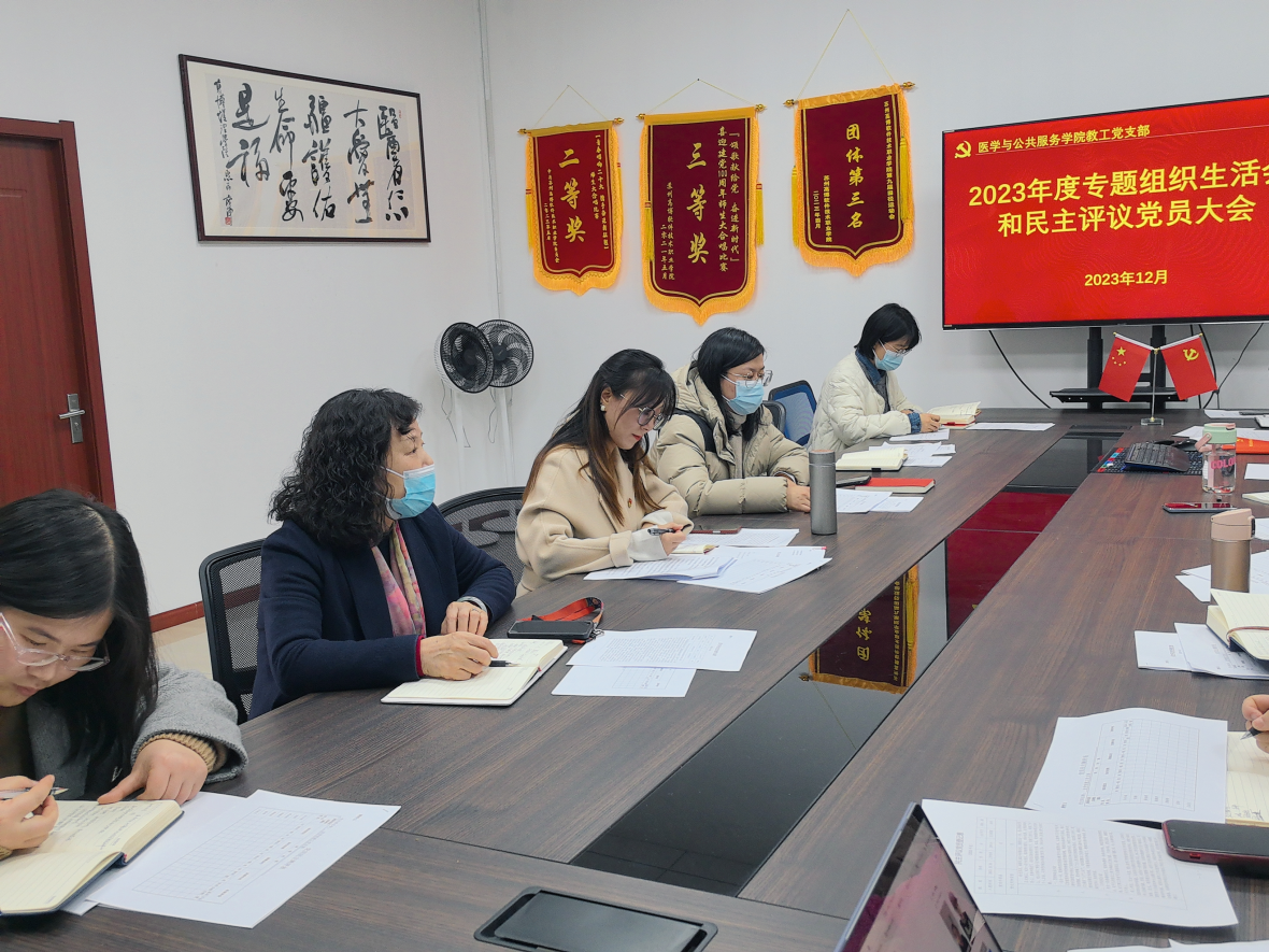 2023年12月27日,医学与公共服务学院教工党支部在学院党员会议室召开2023年度专题组织生活会。教工党支部书记张婷主持会议。