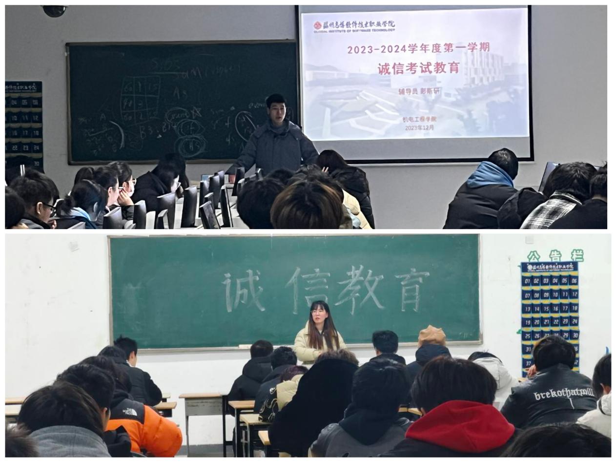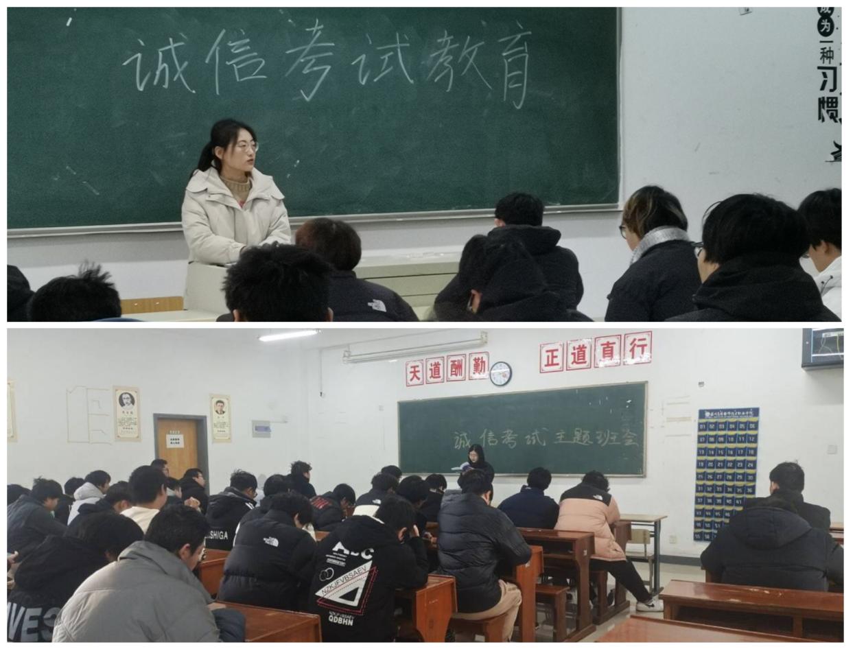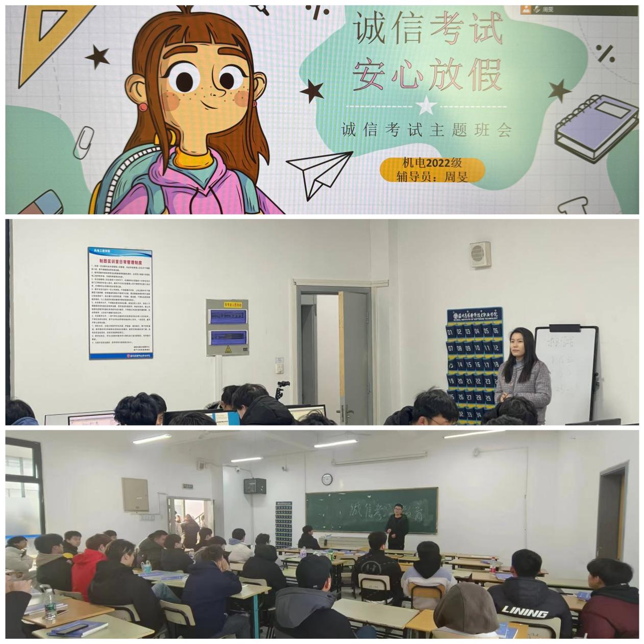 为贯彻落实立德树人的根本任务,提高学生思想道德修养,树立诚实守信的优良学风,营造公平公正的考风,2023年12月25日至29日,机电工程学院组织召开22级、23级全体学生诚信考试主题教育班会。