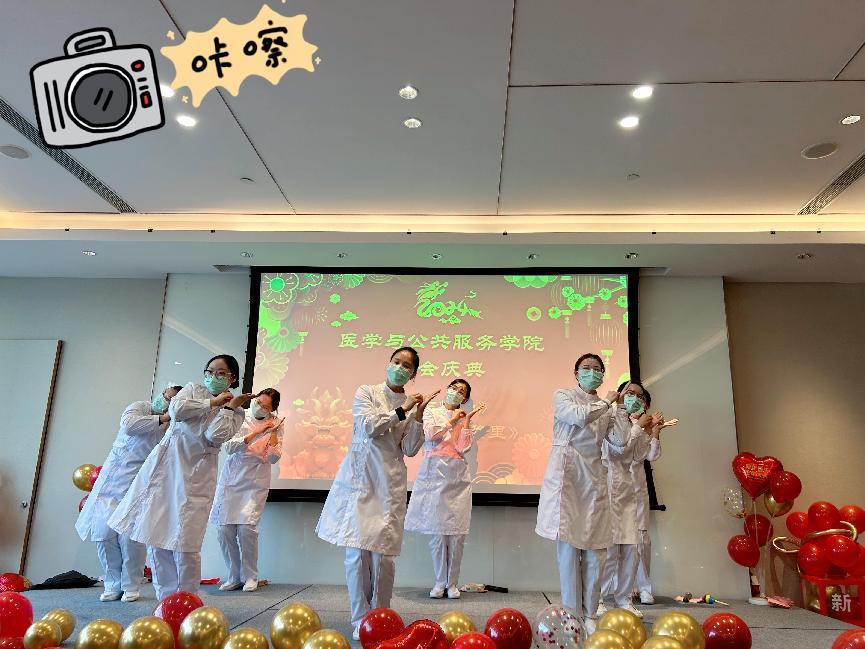 在欢乐的氛围中,全体教职工共同举杯,共庆新年的到来,也祝愿医学与公共服务学院的发展越来越好。(医学与公共服务学院)
