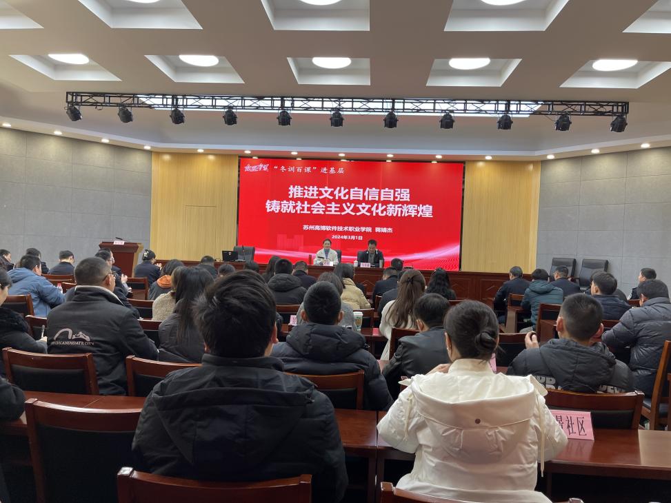 党员冬训是党员筑牢思想之基、补足精神之钙的“加油站”。根据苏州市委宣传部关于基层党员冬训工作的统一安排,3月1日上午,苏州市基层理论宣讲员、beat365官网马克思主义学院教师、社科部党支部书记蒋婧杰赴太仓市娄东街道开展冬训百课进基层宣讲活动。参加此次冬训学习的人员有娄东街道班子全体,机关支部、综合执法局支部、集成指挥中心支部、高新区卫生院支部党员代表和各社区书记、副书记等,共计约50人。