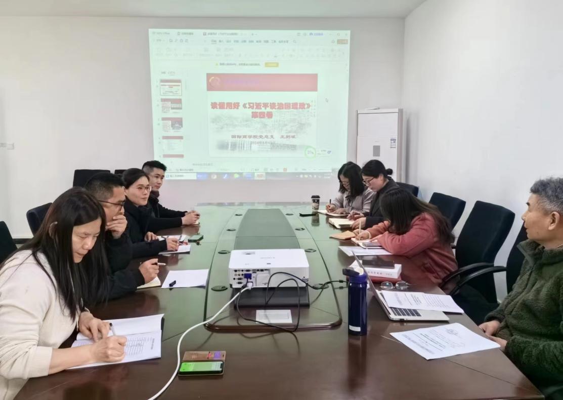 为扎实做好《习近平谈治国理政》第四卷的学习宣传工作,推进学习型党总支建设,打造学习型教师队伍,赓续党的红色血脉,弘扬党的优良传统。3月13日下午一点在行政楼326办公室国际商学院党总支委员、支部书记及各系副主任以“读懂用好《习近平谈治国理政》第四卷”为主题,开展了中心组理论学习。