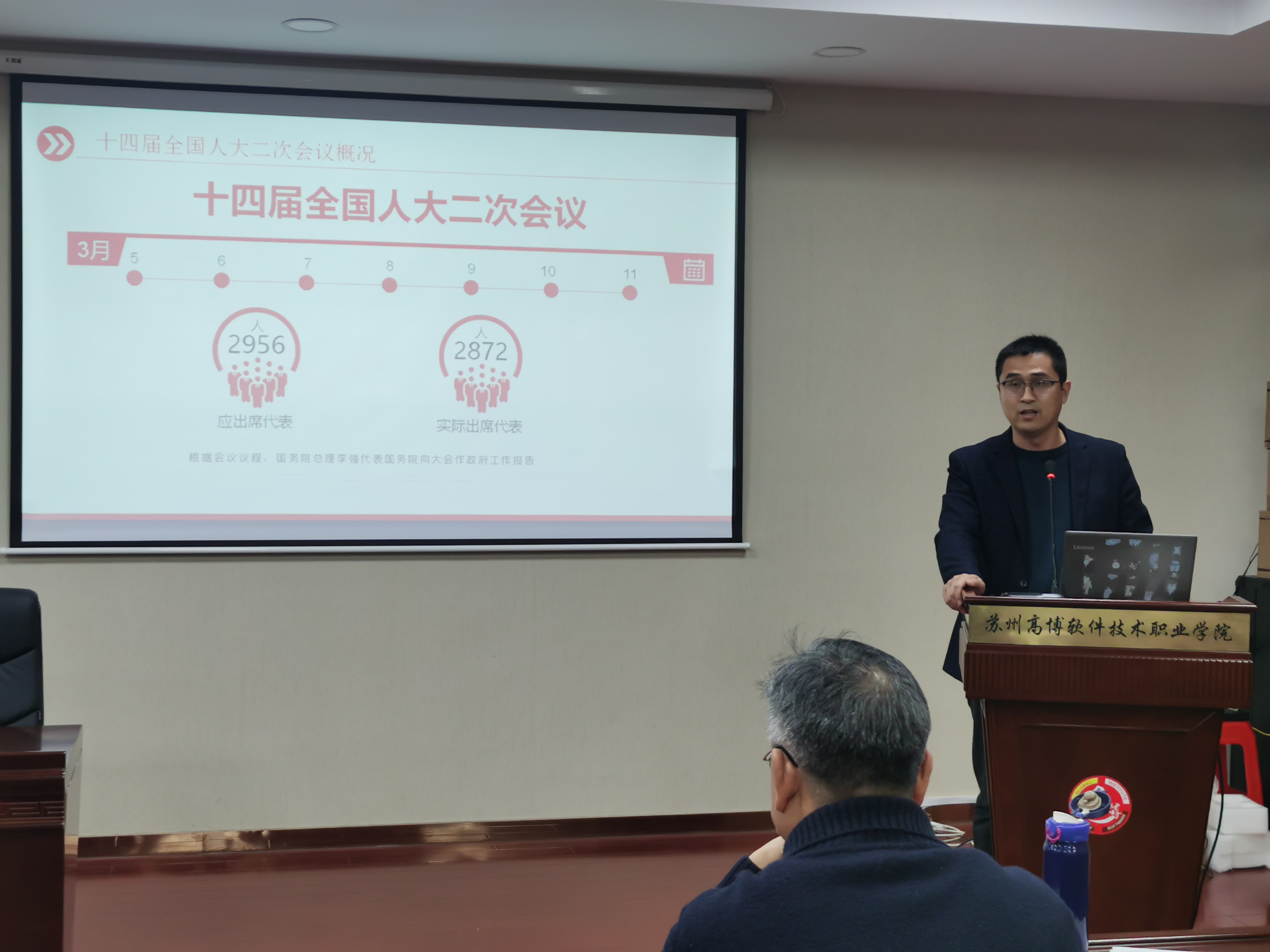 为认真学习、贯彻今年的全国两会精神,切实增强教师责任感和使命感,加深对国家发展大局的认识。3月27日下午,国际商学院党总支组织全体教职工深入学习了李强总理在第十四届全国人民代表大会第二次会议上的政府工作报告。学院党总支副书记张志豪同志以“深入学习贯彻2024年全国两会政府工作报告精神”为主题,为全体教师上了一堂生动的学习辅导课。