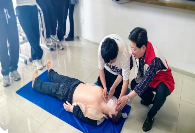 理论培训结束后,同学们进行了分组实操训练。培训师耐心细致地指导每一位受训同学,对心肺复苏操作的每一个步骤进行了耐心、细致的讲解,对操作中常见和易犯的错误及时纠正;在场的每一位同学都依次进行了心肺复苏实操,在培训师的亲手指导下,极大地激发了大家的学习热情,强化了培训效果。