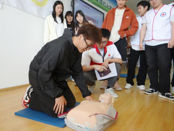 为深入贯彻落实教育部办公厅和中国红十字会总会办公室《关于进一步推进学校应急救护工作的通知》(教体艺厅函〔2021〕22号)的要求,积极传承和发扬“人道、博爱、奉献”的红十字会精神,并加强学生在急救方面的知识教育,提高学生自救互救能力,beat365体育亚洲官方网站红十字会于4月24日下午开展了第一期初级救护员培训,此次培训荣幸邀请到南京大学医学院附属苏州医院重症医学科的李涛和张芸护师主讲。