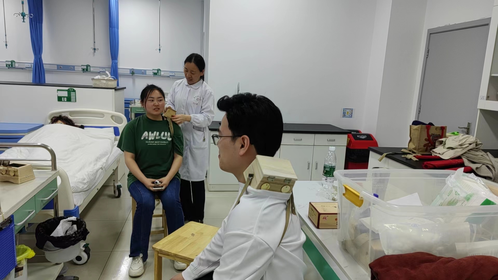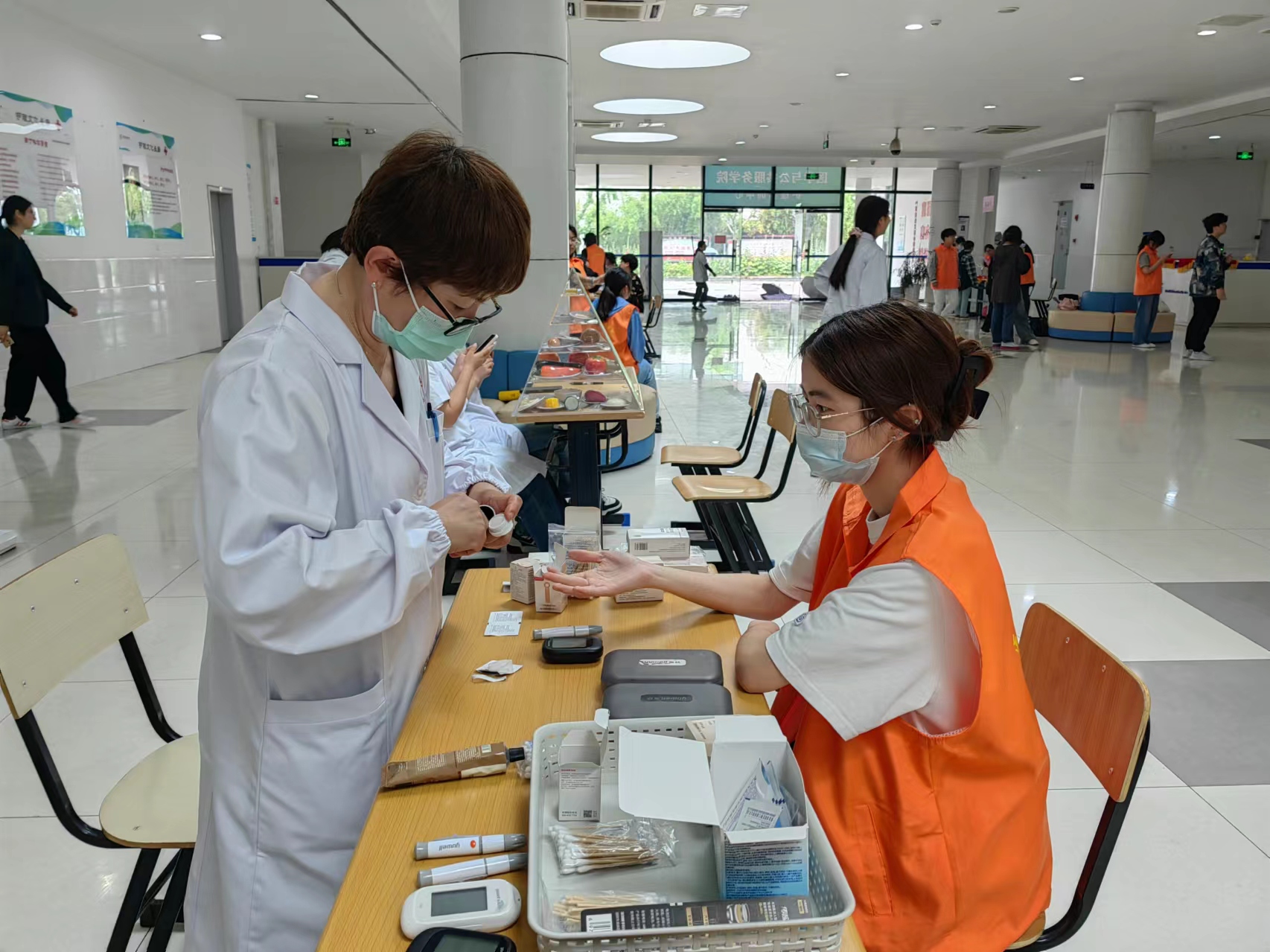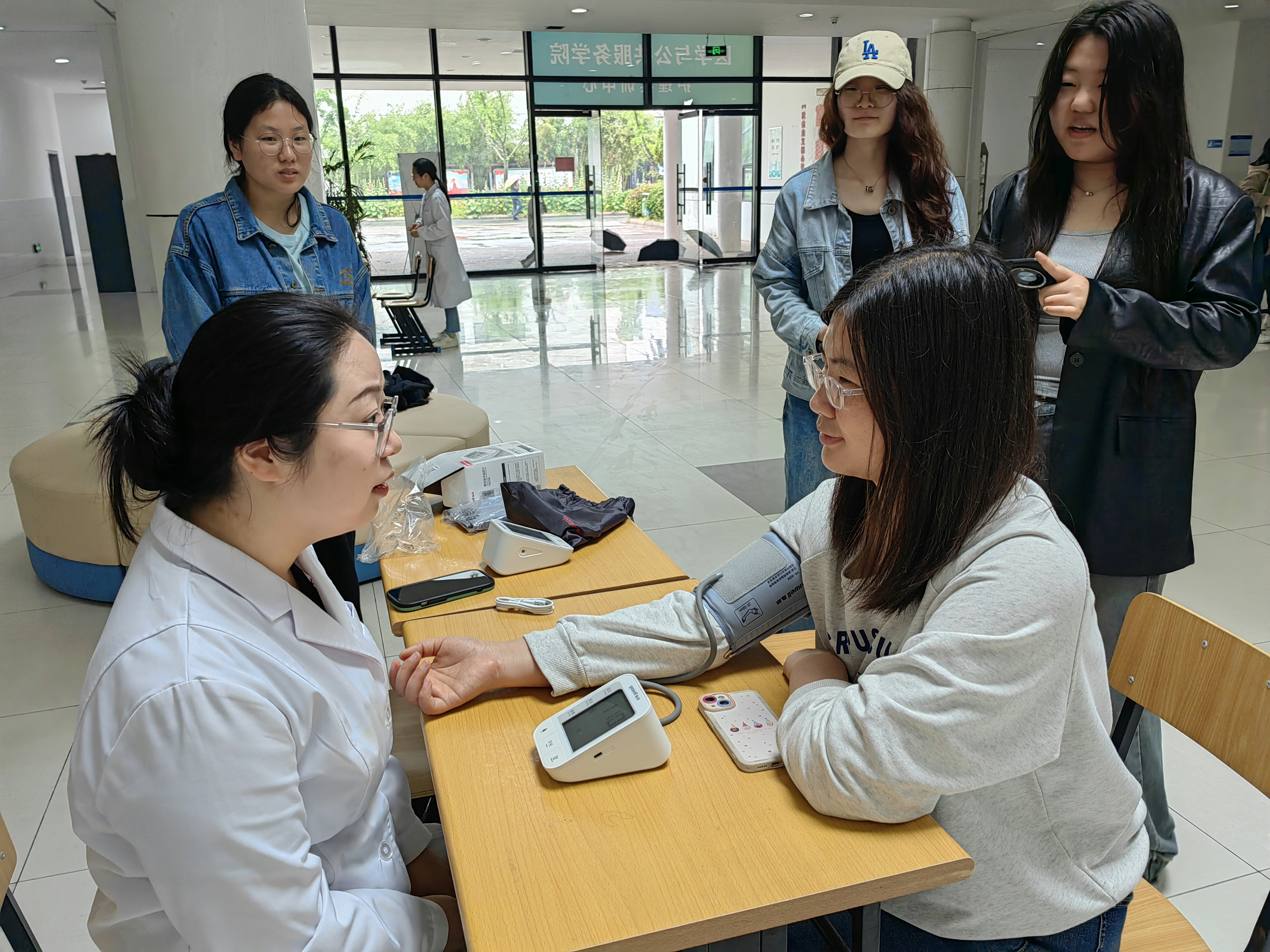 活动现场,学院护理、健康管理专业教师开展了测血压、测血糖、测血型、测身体质量指数,并普及心肺复苏、包扎、中医适宜等专业技术。本次活动还特别邀请了苏州中西医结合医院的医生给beat365官网师生做中医问诊,提供拔罐、艾灸、刮痧、穴位按摩等护理操作,闻讯而来的师生络绎不绝。
