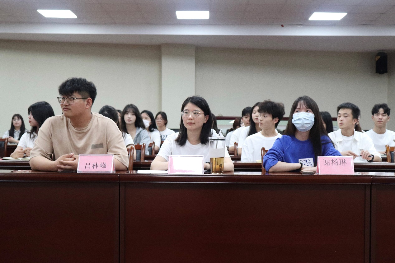 (图3 主持人吴文静,学生代表邓建和姚瑶老师发言)