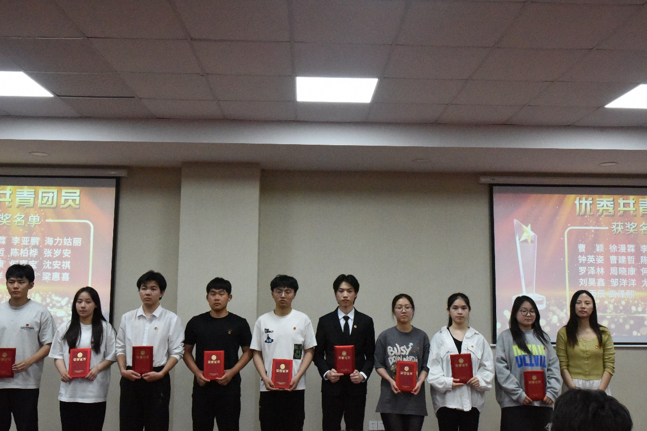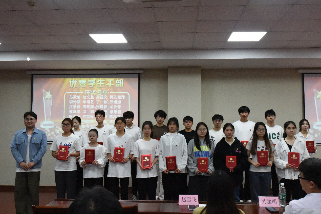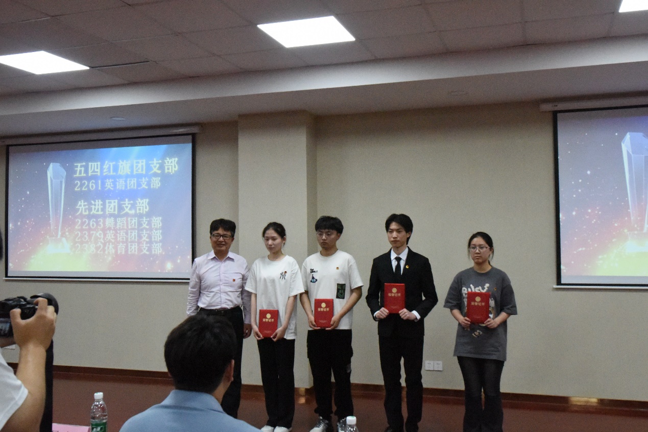 (吴建明书记为五四红旗团支部和先进团支部颁奖)
