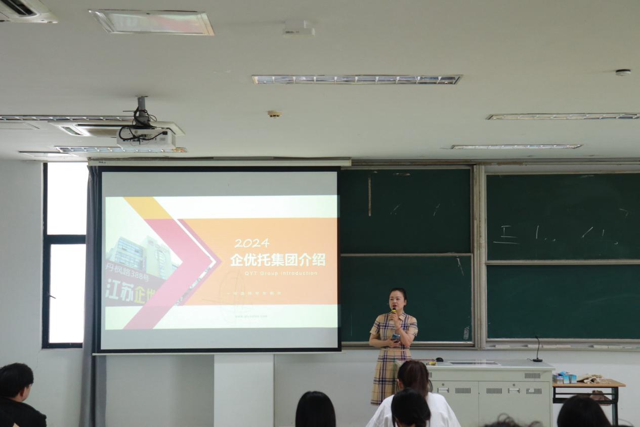 宣讲会伊始,企优托集团的负责人通过PPT介绍了企业的发展历程、品牌定位、管理方向和人才理念。他们强调,企优托集团一直致力于打造创新、开放、包容的企业文化,为员工提供广阔的发展空间和良好的福利待遇。同时,他们也分享了公司在人才培养、晋升机制等方面的经验和做法,让在场的学子们对企业有了更深入的了解。