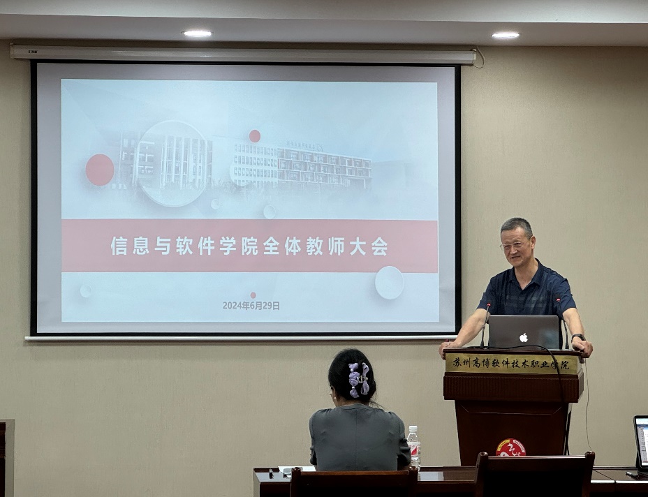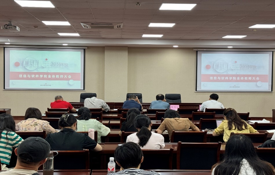 6月29日,信息与软件学院在14-215会议室召开全体教师大会,会议由孙涌院长主持。