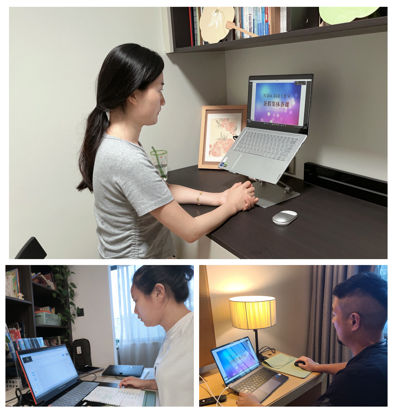 7、8月份夏日酷暑,学院苏园、匠新、新媒艺、新视界、建筑咨询工作室的全体教师不畏炎日积极响应关于开展沉浸式教学质量提升活动工作部署,在汤云叶、韩美英、张薇、孙雅琼主任们的带领下沉浸于集体备课交流研讨氛围中。经过反复深入地讨论交流,视觉传达、影视动画、数字媒体艺术、室内设计、环境艺术设计、工程造价专业的老师们分专场分享了各自的备课情况以及教学策略的创想,并向学院领导进行了在线汇报。