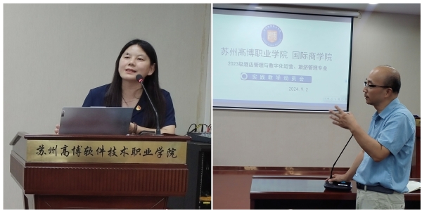 为激发2023级学生参与实践学习的热情,帮助学生明确实践学习的方向和目标,引导学生做好各项准备工作,确保实践教学工作顺利、有序开展,国际商学院社会服务系于2024年9月2日举办2023级学生赴企业实践学习动员会。本次会议由社会服务系副主任李东娇主持,国际商学院常务副院长张静、社会服务系主任朱福兴、社会服务系骨干教师吴振杰和辅导员吕林峰、上海亚湾酒店管理有限公司人事经理沈敏及各企业代表出席会议,2023级酒店、旅游专业全体学生参会。
