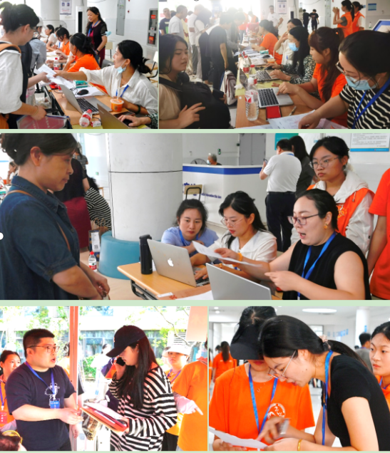 报到现场,人声鼎沸,热闹非凡,工作井然有序。各专业的老师们面带微笑,以温暖如春的话语和充满关怀的眼神迎接着来自四面八方的学子,并认真解答她们对未来专业方面的学习疑惑,让这份初入校园的旅程充满温馨。