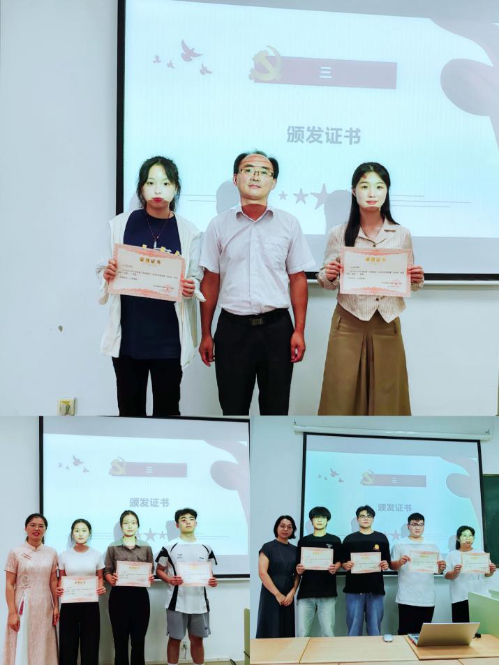 经过激烈角逐和评委们认真严谨、客观公正的评审,比赛最终决出一等奖2名、二等奖3名、三等奖4名。吴院长、蒋老师和陈老师分别为获奖选手颁奖并合影。