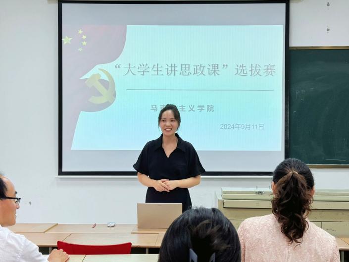 为深入学习贯彻习近平总书记对学校思政课建设的重要讲话和重要指示批示精神,教育引导大学生在“大思政课”中受教育、长才干、作贡献,坚定不移听党话、跟党走,马克思主义学院于9月11日下午在行政楼320教室举办“大学生讲思政课”选拔活动,马克思主义学院院长、人文社会科学学院副院长吴歧范、思政教研室主任蒋婧杰、劳动教育教研室主任陈丽侠、思政教师张颖、马苏苑等参加活动并担任评委,由思政课上遴选出的16位同学参加比赛。活动由张颖老师主持。