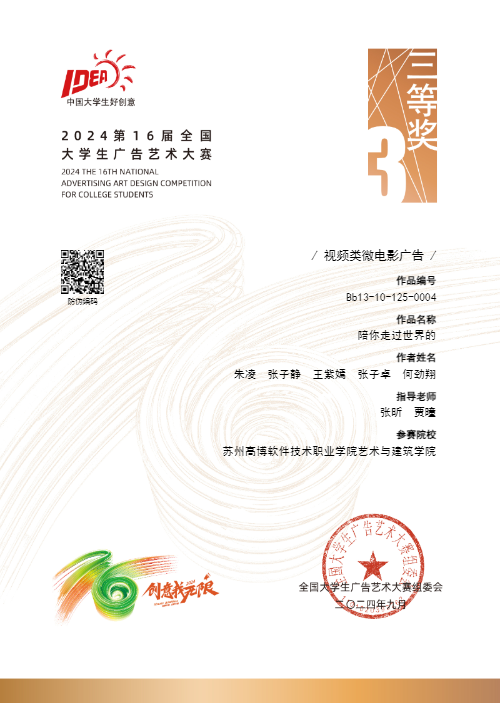 第16届全国大学生广告艺术大赛由教育部高等教育司指导,教育部高等学校新闻传播学类专业教学指导委员会、中国高等教育学会广告教育专业委员会共同主办,是国内规模最大、覆盖高等院校最广、参与师生人数最多、具有较大社会影响力的全国性高校学科竞赛。