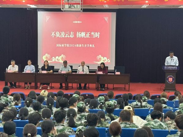 金秋送爽开学日,万里鹏程由此启。9月27日上午,国际商学院2024级新生开学典礼在实训楼报告厅隆重举行。学院领导班子,各系主任、副主任、教师代表、2024级全体新生及辅导员老师参加本次典礼,典礼由学院党总支副书记张志豪老师主持。