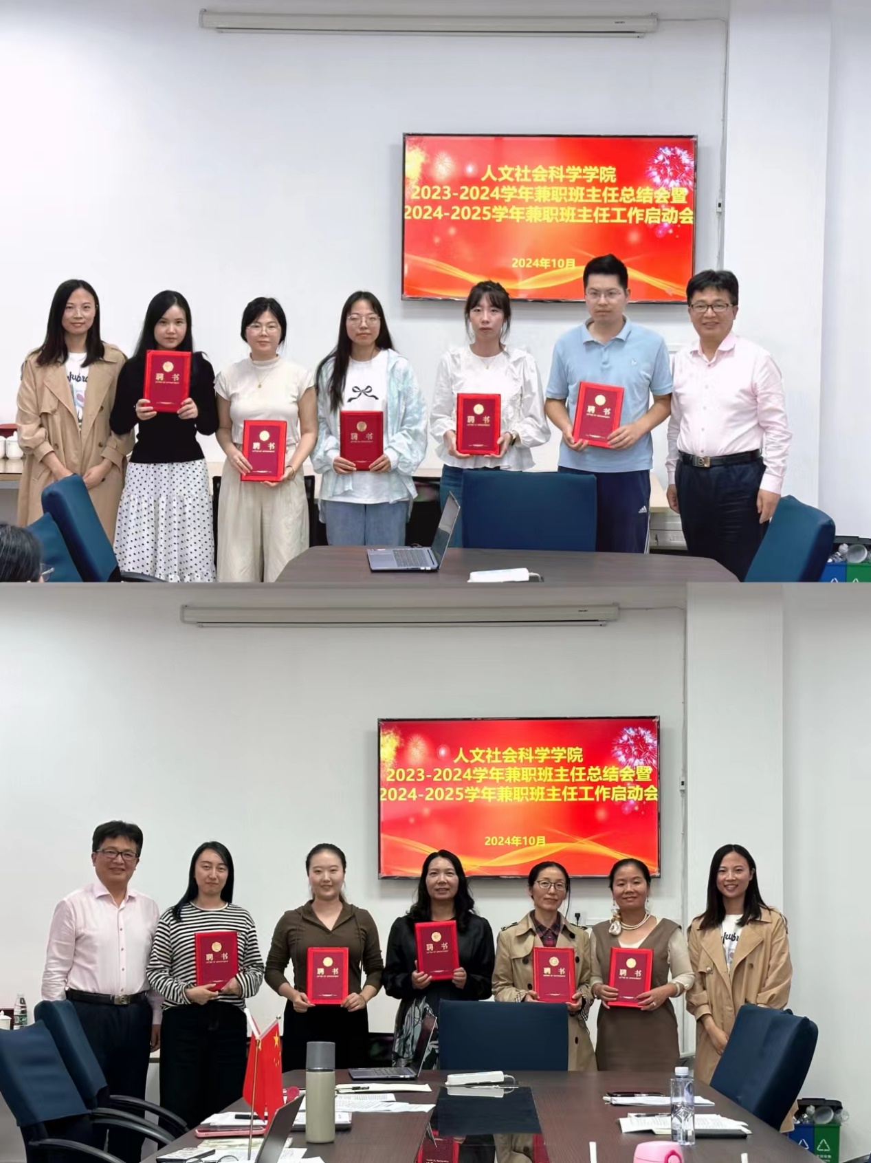 10月9日,人文社会科学学院在14-234召开了“2023-2024学年兼职班主任总结会议暨2024-2025学年兼职班主任启动会”。此次会议旨在总结过去一学年兼职班主任工作的经验与成果,明确新学年的工作职责与方向,进一步加强学院教风学风建设,为学院学生工作的持续发展注入新的动力。